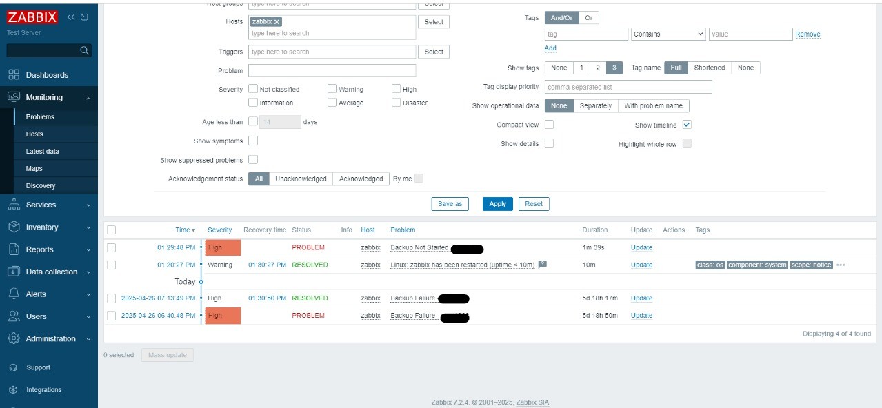 Result The DB Monitor project shows how precise log parsing and disciplined Zabbix modeling can reduce time to detect and resolve backup issues, increase trust in alerts, and make retention compliance visible and actionable for both operators and managers.